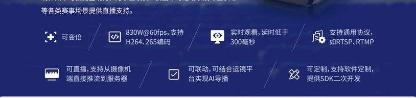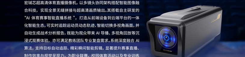 宏珹芯超高清体育直播摄像机,以多镜头协同架构搭配智能图像融合科技,实现全景无缝拼接与超高清画质输出。其搭载自主研发的“AI体育赛事智能直播系统”,打造从前端设备到云端平台的