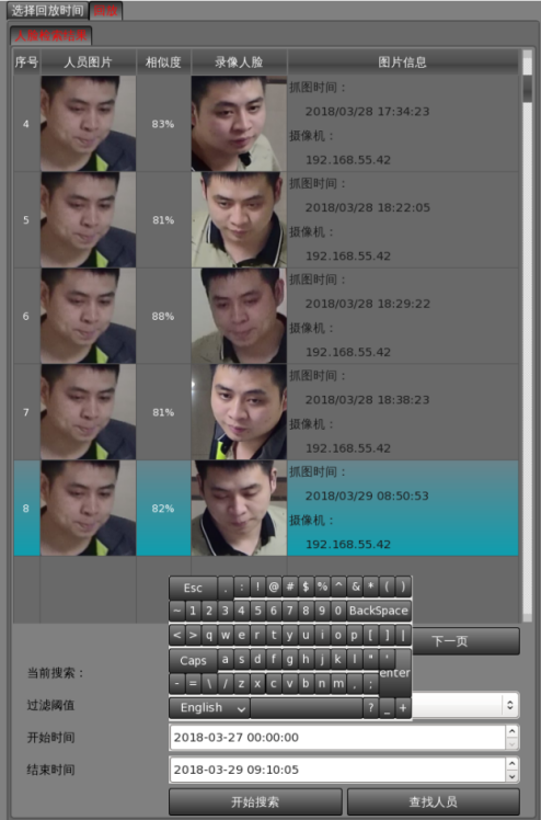 根据上传的人员图像和检索条件在对应选项中的人脸库中查询符合条件的人脸,输入需要的检索条件,如姓名、性别、年龄、证件号等。可进行条件范围内的查询。支持实时抓取通过摄像头的人脸照片,在事后进行反向检索。