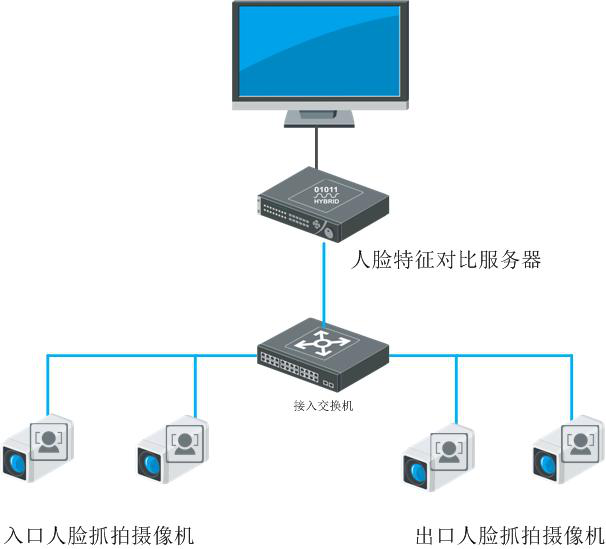 在人脸识别系统中,创建不同名称人脸库,按需求可建立:员工、可疑人员、领导等不同的人脸库。当旅客进门时,在不用配合的情形下,摄像机检测到人脸图像,并完成识别,显示归属库,此方案可快速分辨进入识别区域的人脸信息,秒级识别出人员的对应信息,优化了出入口人员管理。